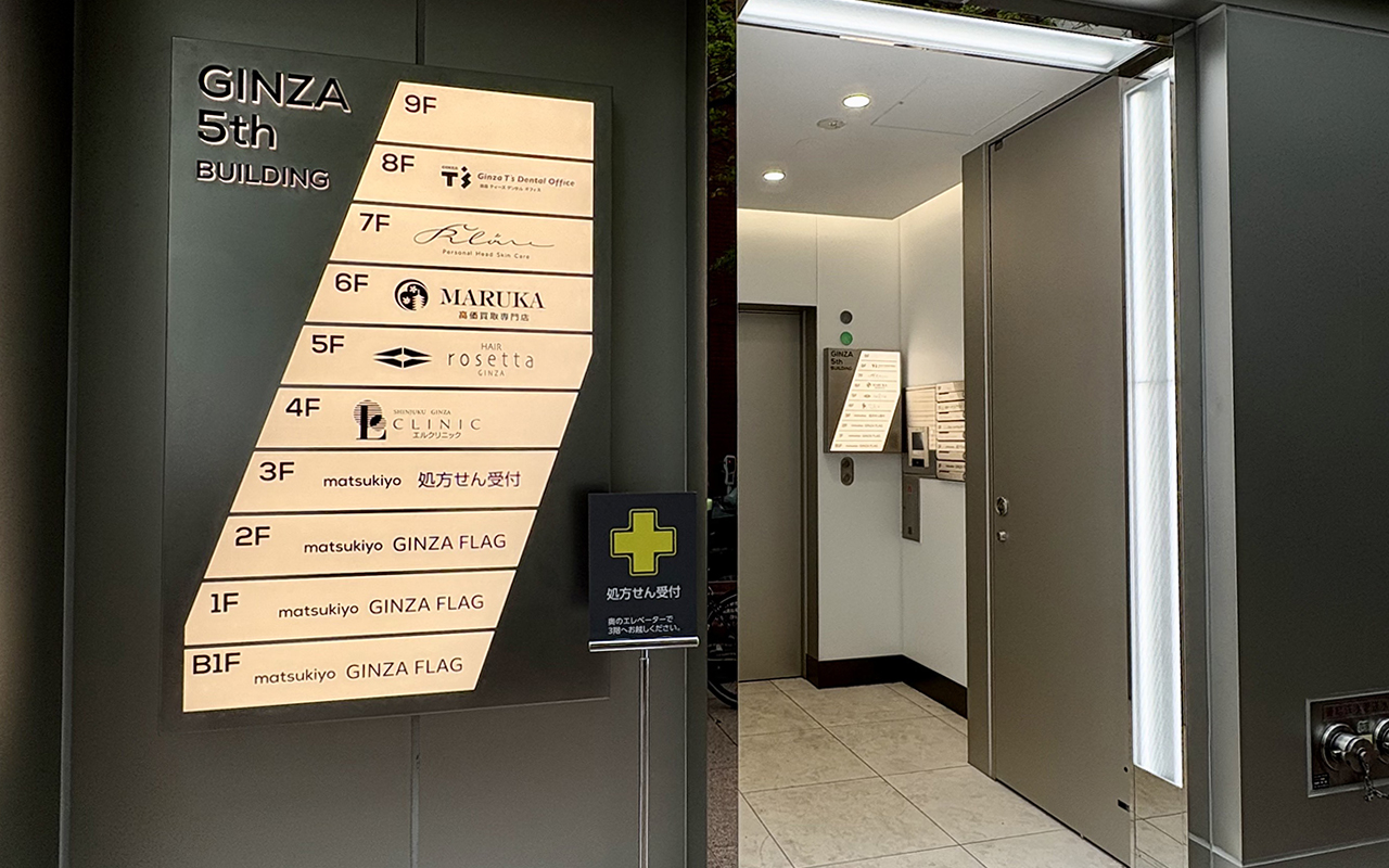 そのマツモトキヨシ様のビルの4階にエルクリニック銀座院がございます。