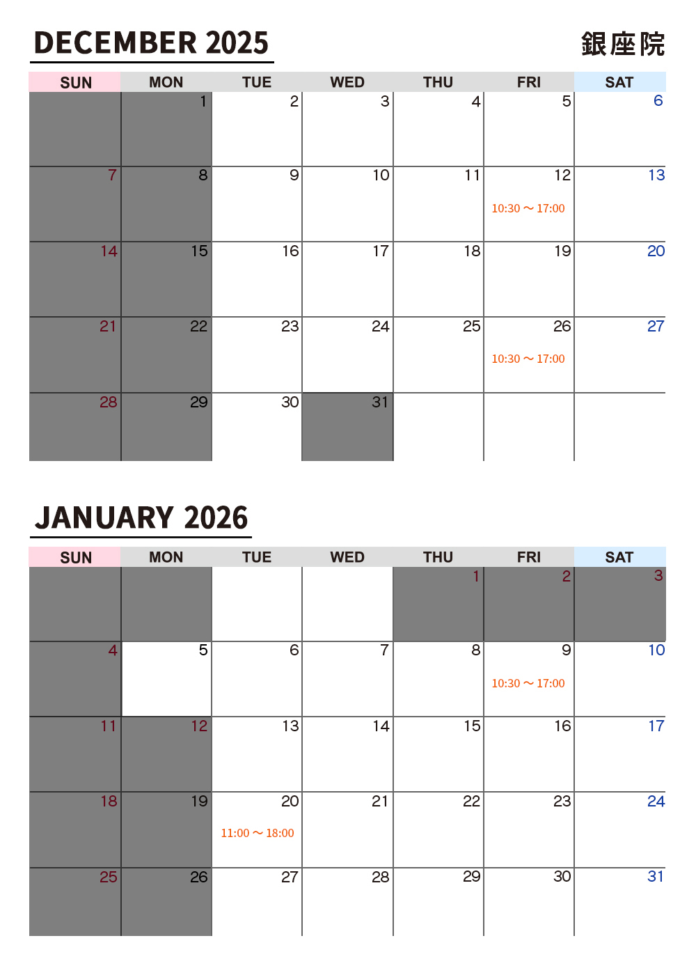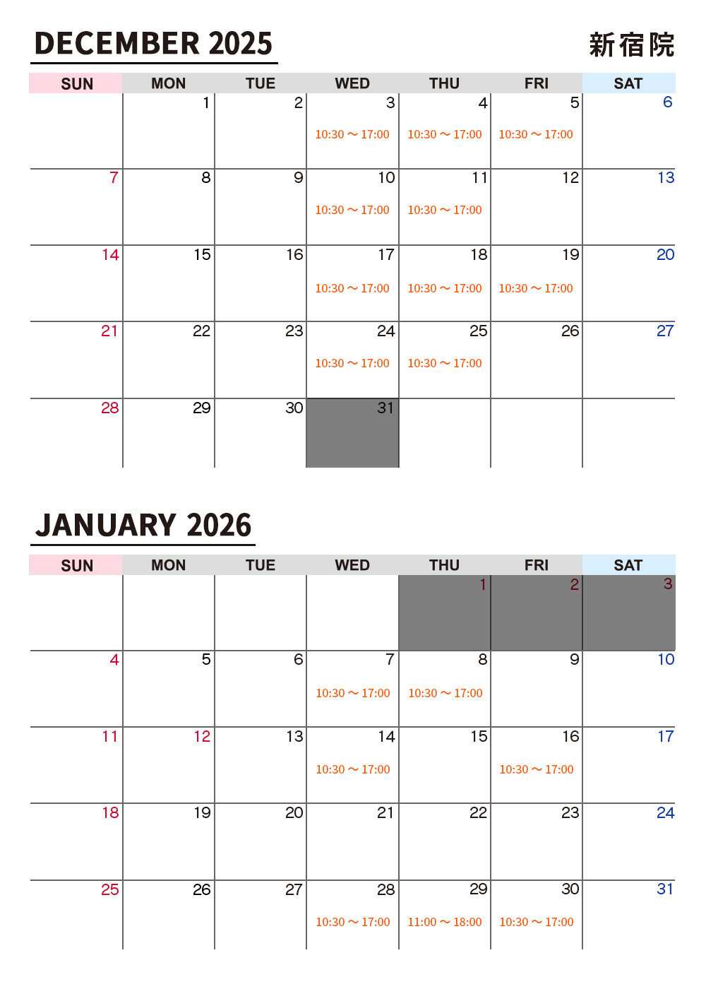 年末年始(12月・1月)の診療時間につきまして、下記の通りご案内致します。